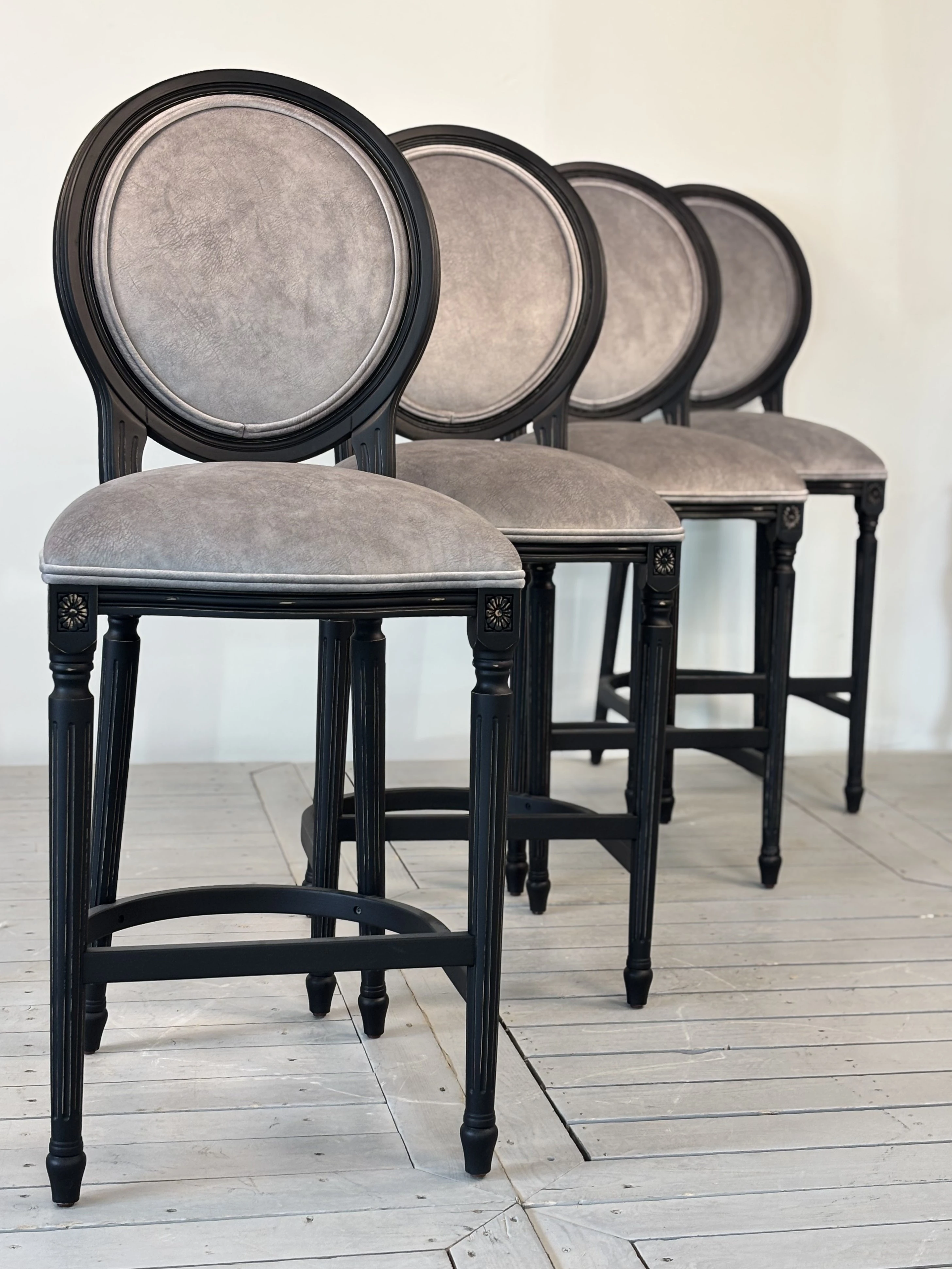 Полубарный стул Medalion — это сочетание классического дизайна и современного комфорта. С округлыми формами и декоративной резьбой, он прекрасно дополнит как кухню, так и столовую. Каркас, выполненный из прочного массива бука, гарантирует надежность и долгий срок службы. Высота стула 115 см, высота до сиденья — 64 см, идеально подходит для полубарных стоек. Если вы хотите купить полубарный стул для кухни или стильный стул в стиле лофт, Medalion — отличный выбор.
